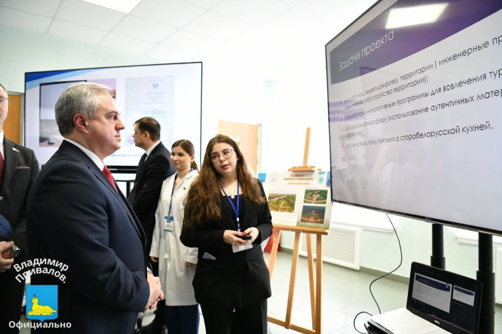 В рамках встречи Председатель Гомельского горисполкома Владимир Привалов посетил выставку, на которой отражены разработки и достижения Гомельских вузов. Первая локация позволила ознакомиться с достижениями и уникальными разработками каждого учебного заведения. Были продемонстрированы перспективные проекты, направленные на развитие различных отраслей экономики региона. Вторая локация представила научные достижения и инновационные разработки сотрудников Гомельского государственного университета имени Франциска Скорины.