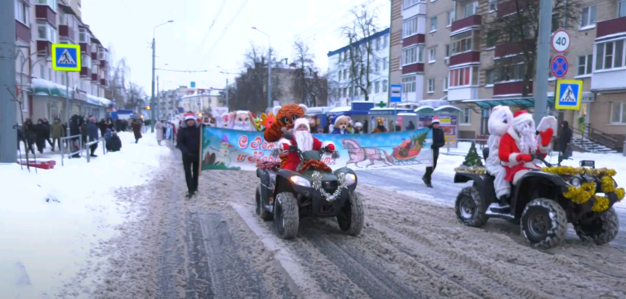 17.12.2022Деды Морозы и Снегурочки в праздничной колонне прошли по улицам Новобелицы (видео)