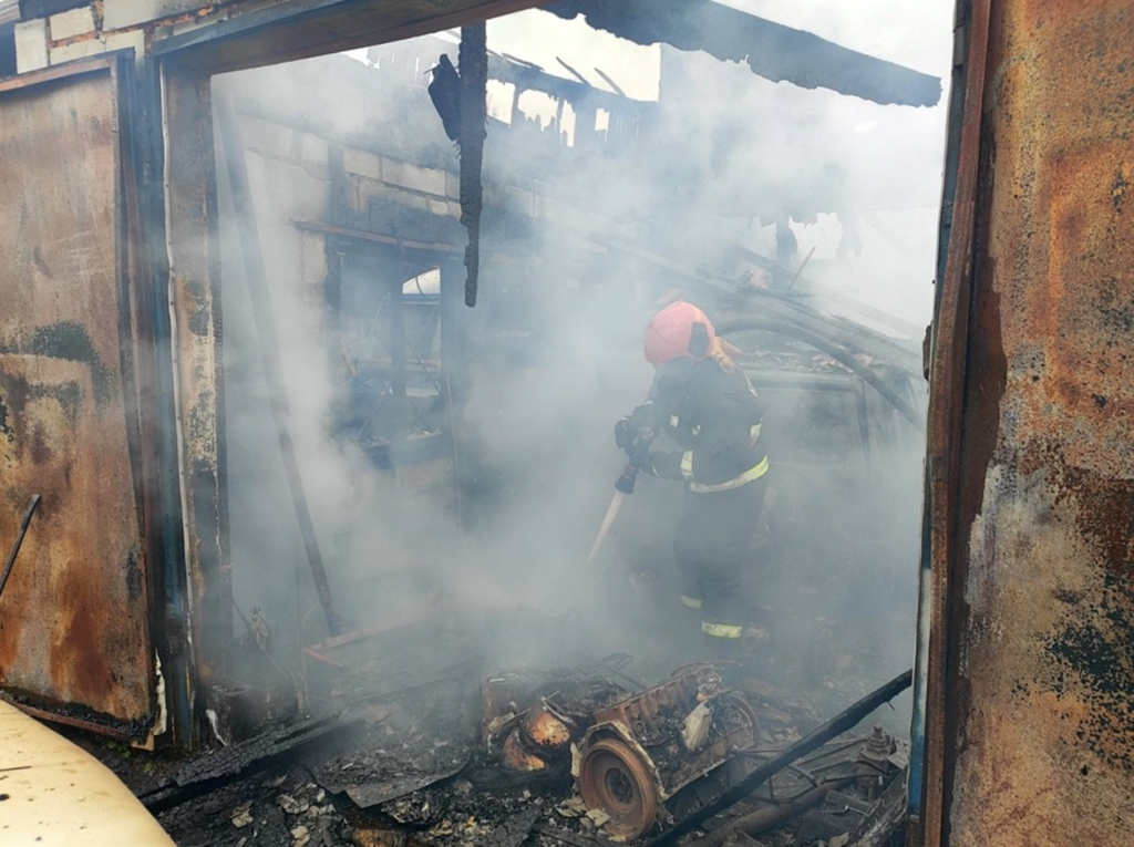 10 апреля в 10-08 поступило сообщение о пожаре гаража в г. Гомеле по ул. Петровского. В результате уничтожены кровля и имущество в гараже, легковой автомобиль, гидроцикл. Рассматриваемая версия причины пожара – нарушение правил эксплуатации печей, теплогенерирующих агрегатов и устройств.