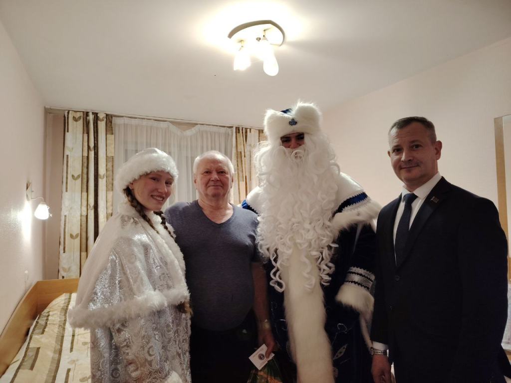 Представители горисполкома, управления по труду, занятости и социальной защите, администрации Советского района, предприятий Гомеля, а с ними Дед Мороз и Снегурочка двумя группами постарались охватить всех жильцов вниманием и заботой.